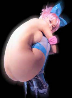 So, John was telling me that in Asian societies, having hugenormous eyeballs is some sort of sign of beauty, so they try to open their eyes as much as possible during photo oportunities. I never thought much about it till I ran across this pic during my daily pr0n parusal. Now don't get my wrong, that chick is hot (yo), but my god, it looks like she just spent 4 hours with the doctors from Clockwork Orange. I wonder what they think of those people who can pop their eyeballs out and wiggle em around, maybe they're revered as some sort of god. Probably not, probably just think they're freaks like we do, but ya gotta wonder...