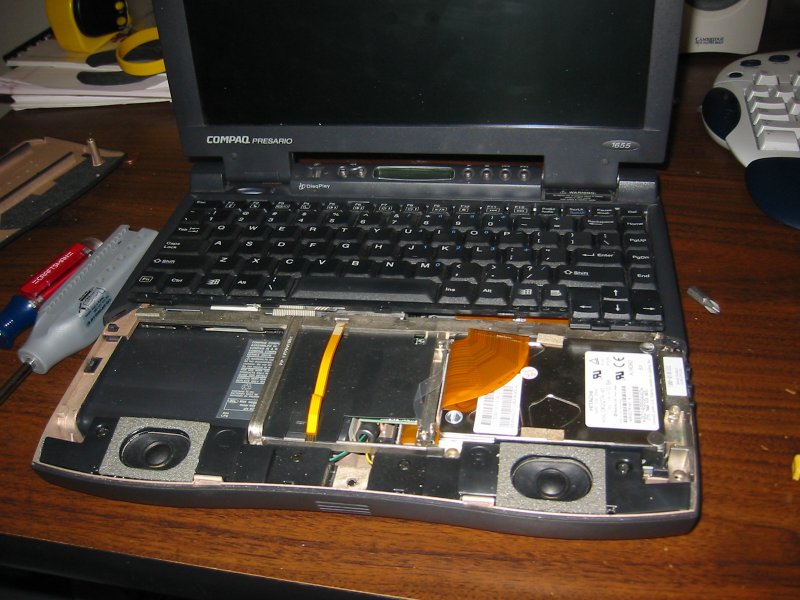 Disassembly begins. First the to go is the wrist-rest slash touch pad.