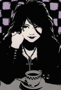 and this is another girl i like. her name is death and she's very very very very pretty and cool. she's been all over the whole world lots and lots of times and has met lots of people and she can tell cool stories. oh, and she wears a cool necklace like i draw on all of my stuff. and she likes coffee. coffee is soooooooo good, but it's not a girl so i can't say it's my girlfriend.